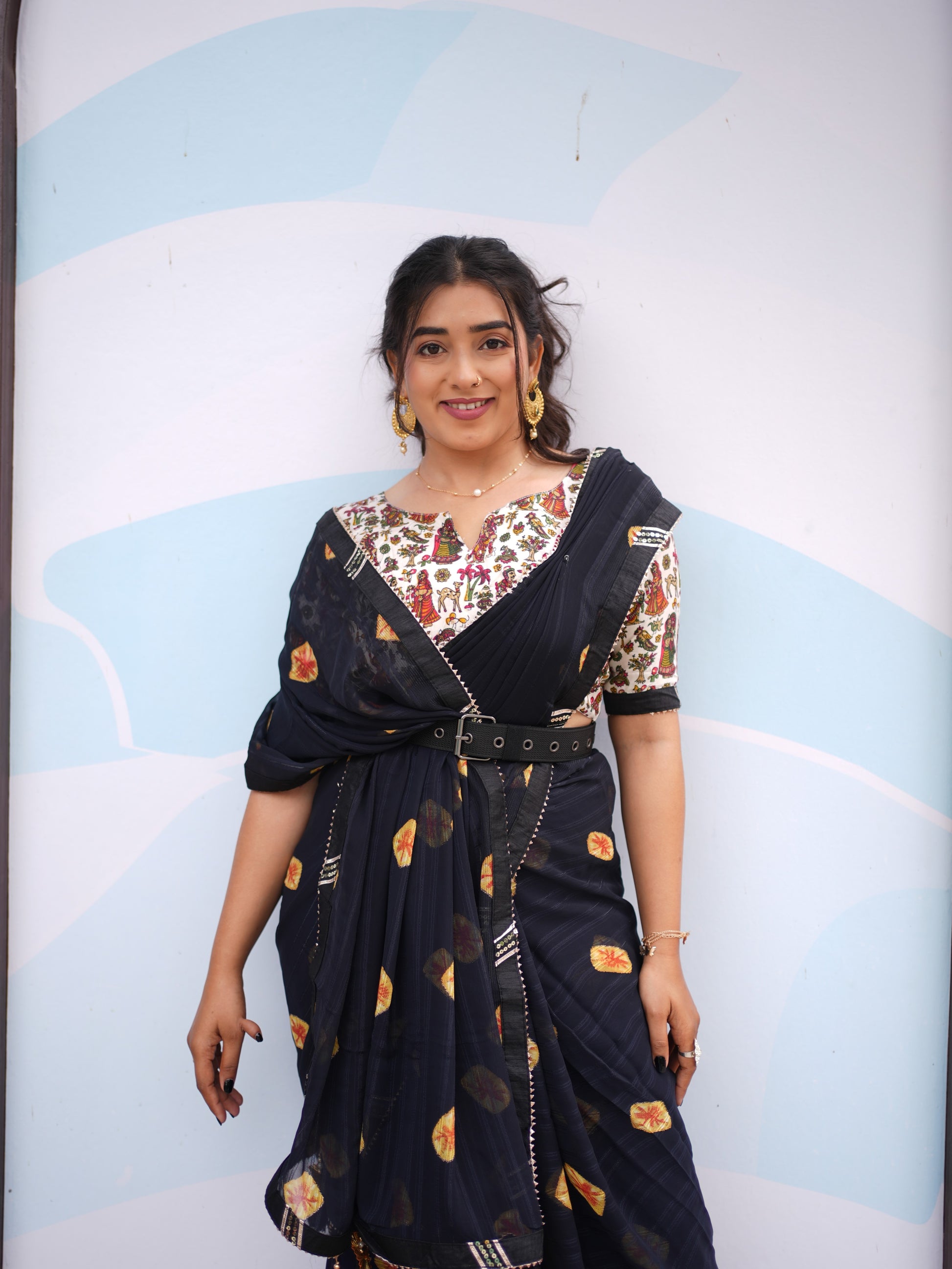 Midnight Noir Printed Elegance Saree