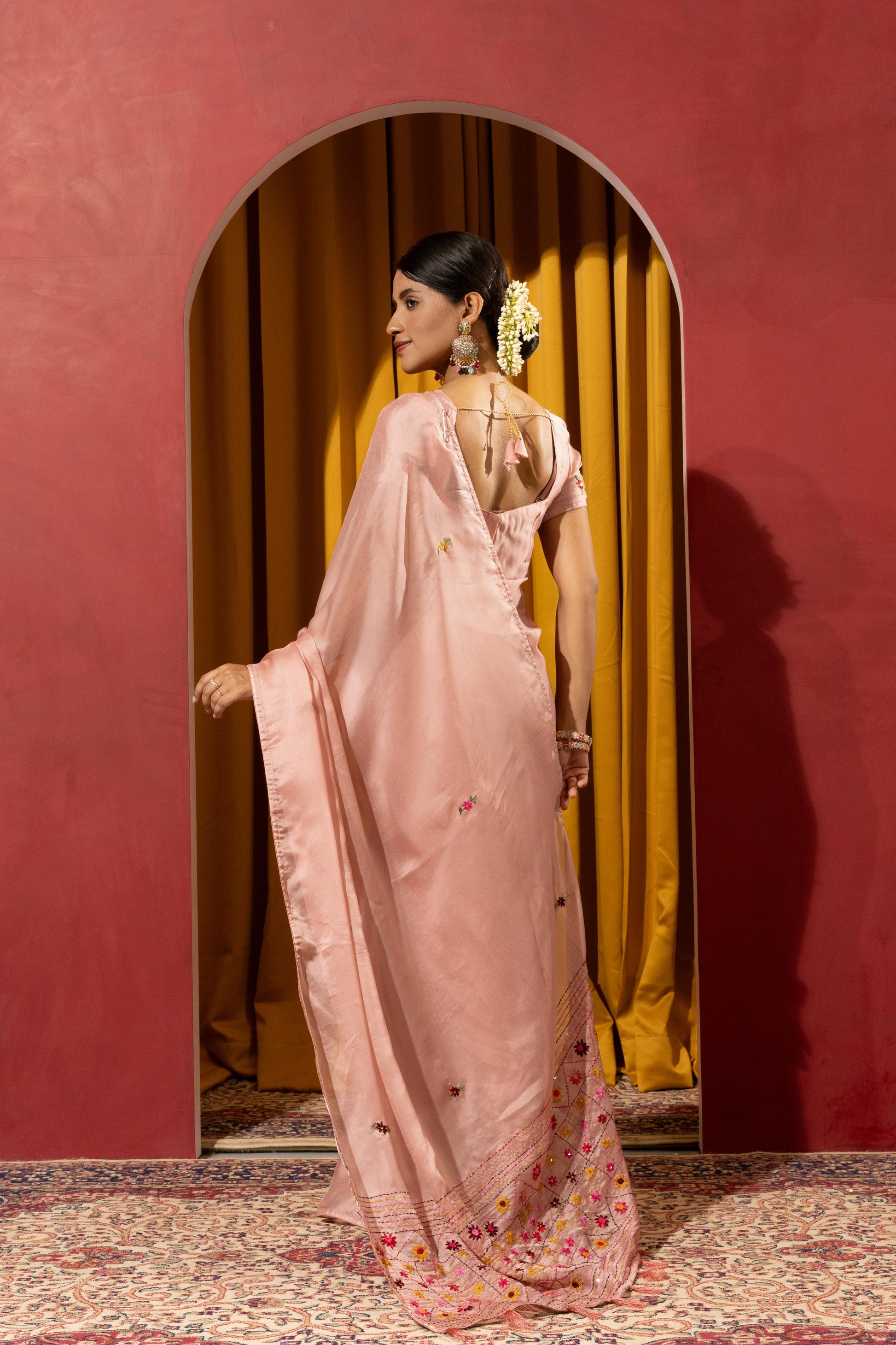 SERENE PEACH EMBROIDERED ORGANZA SAREE