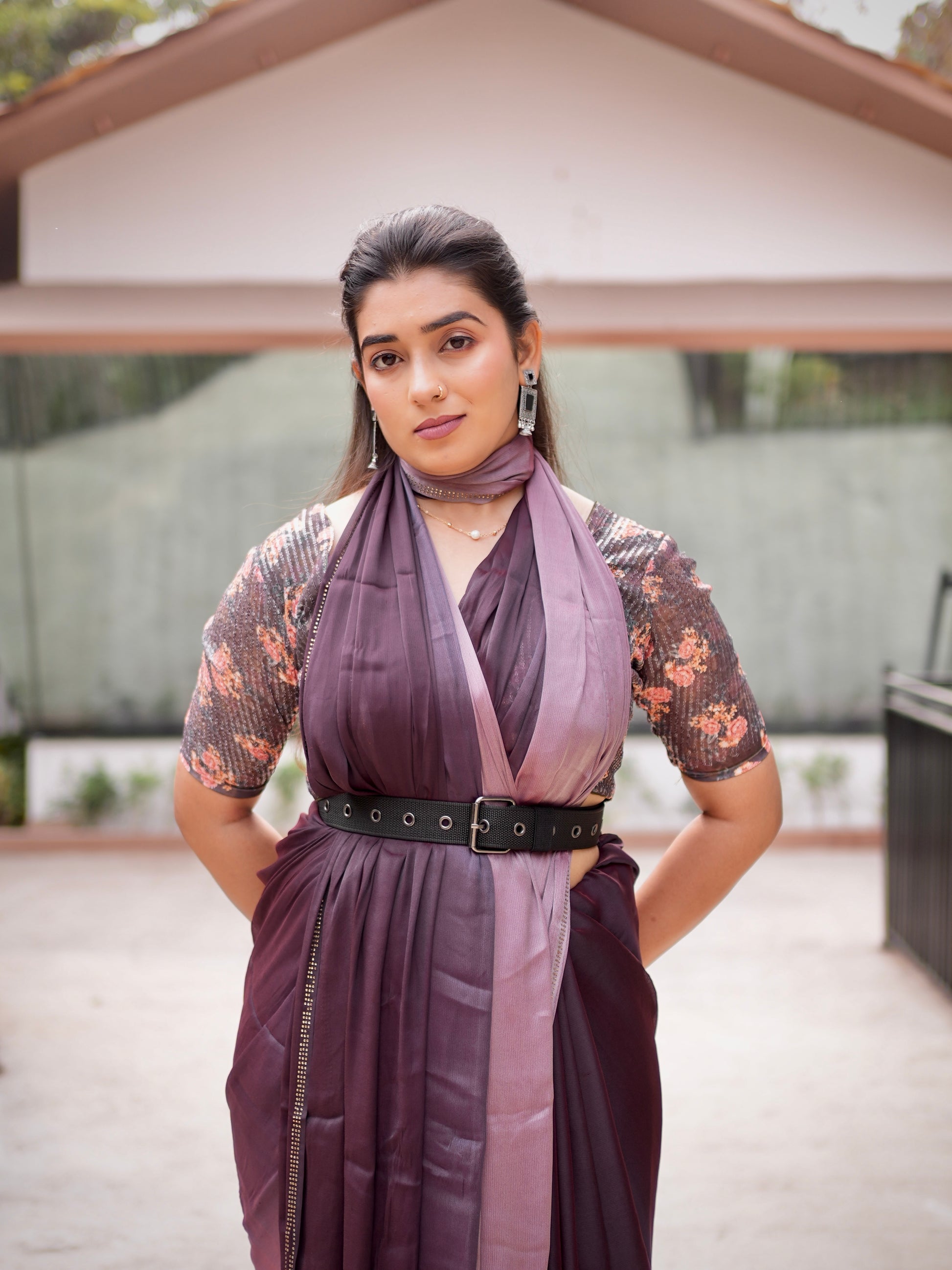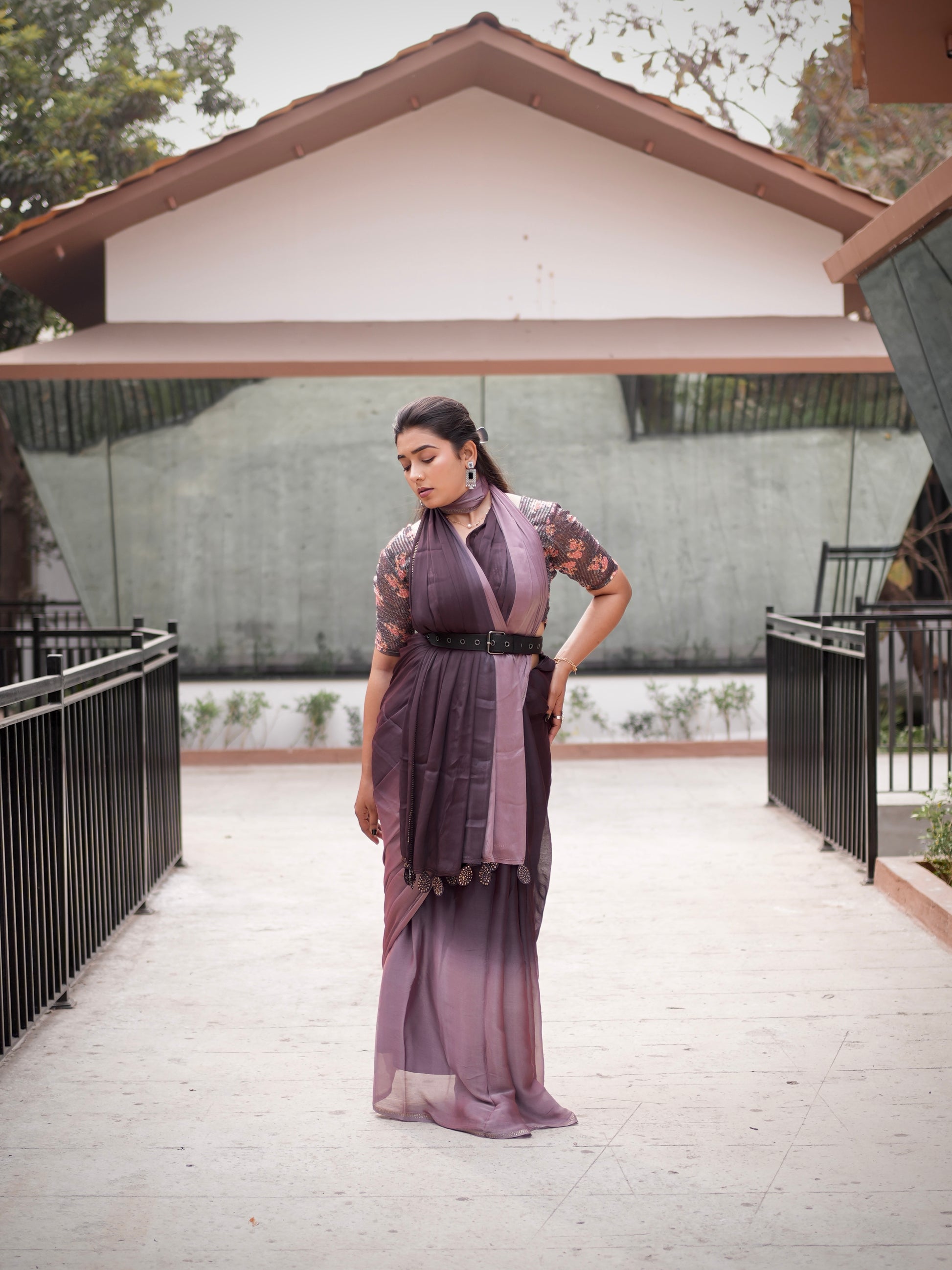 ENCHANTED CHARTREUSE & GRAPE DUAL-TONE SAREE